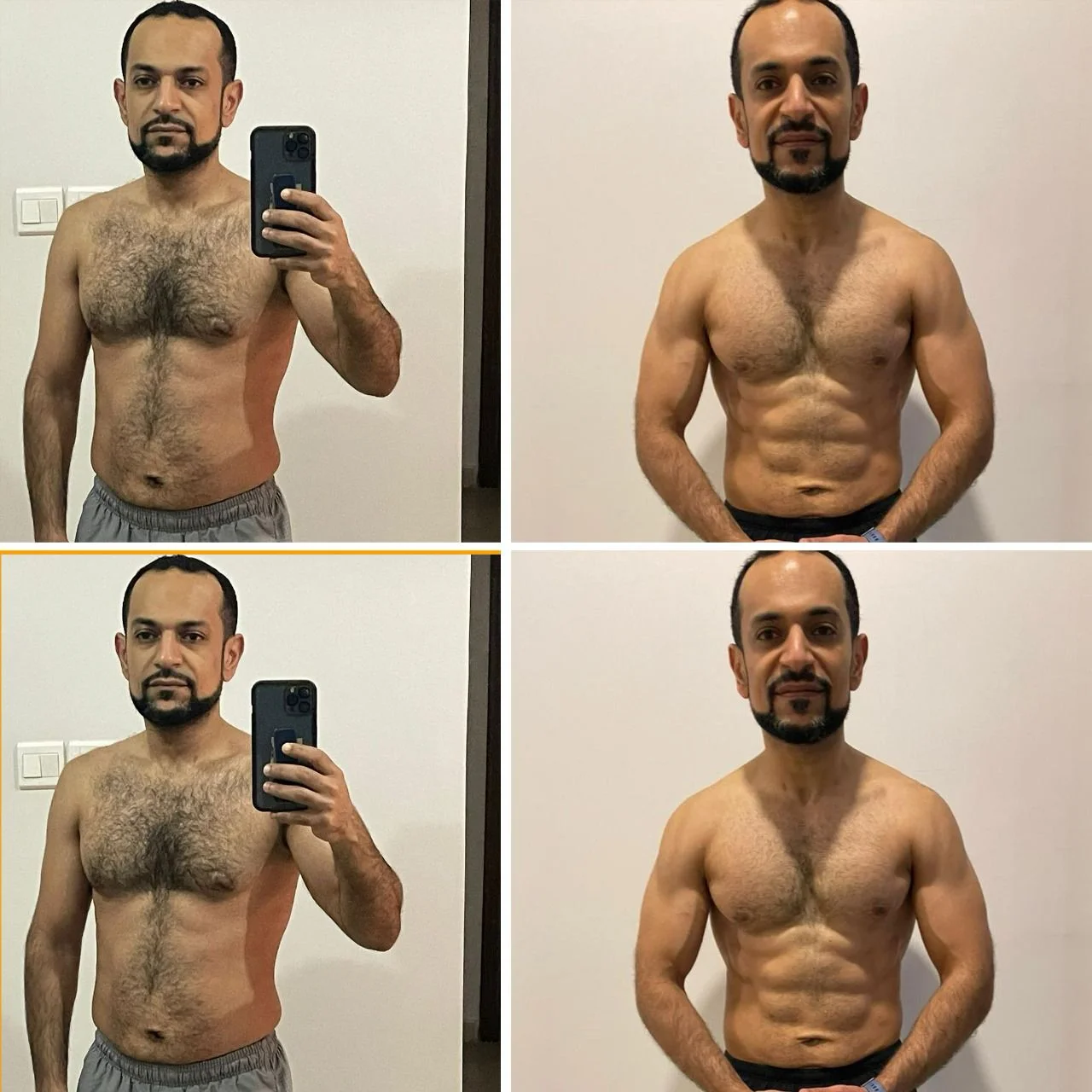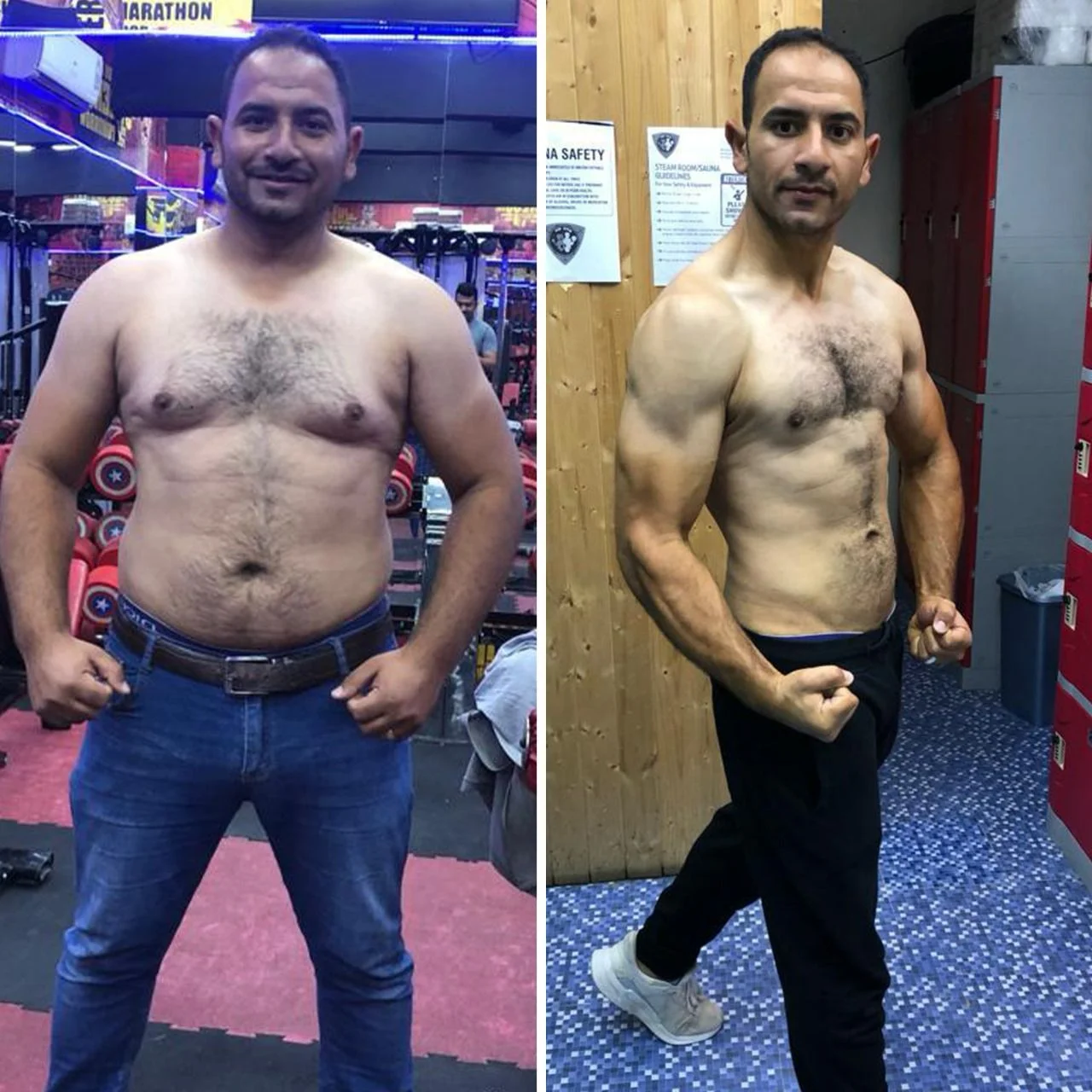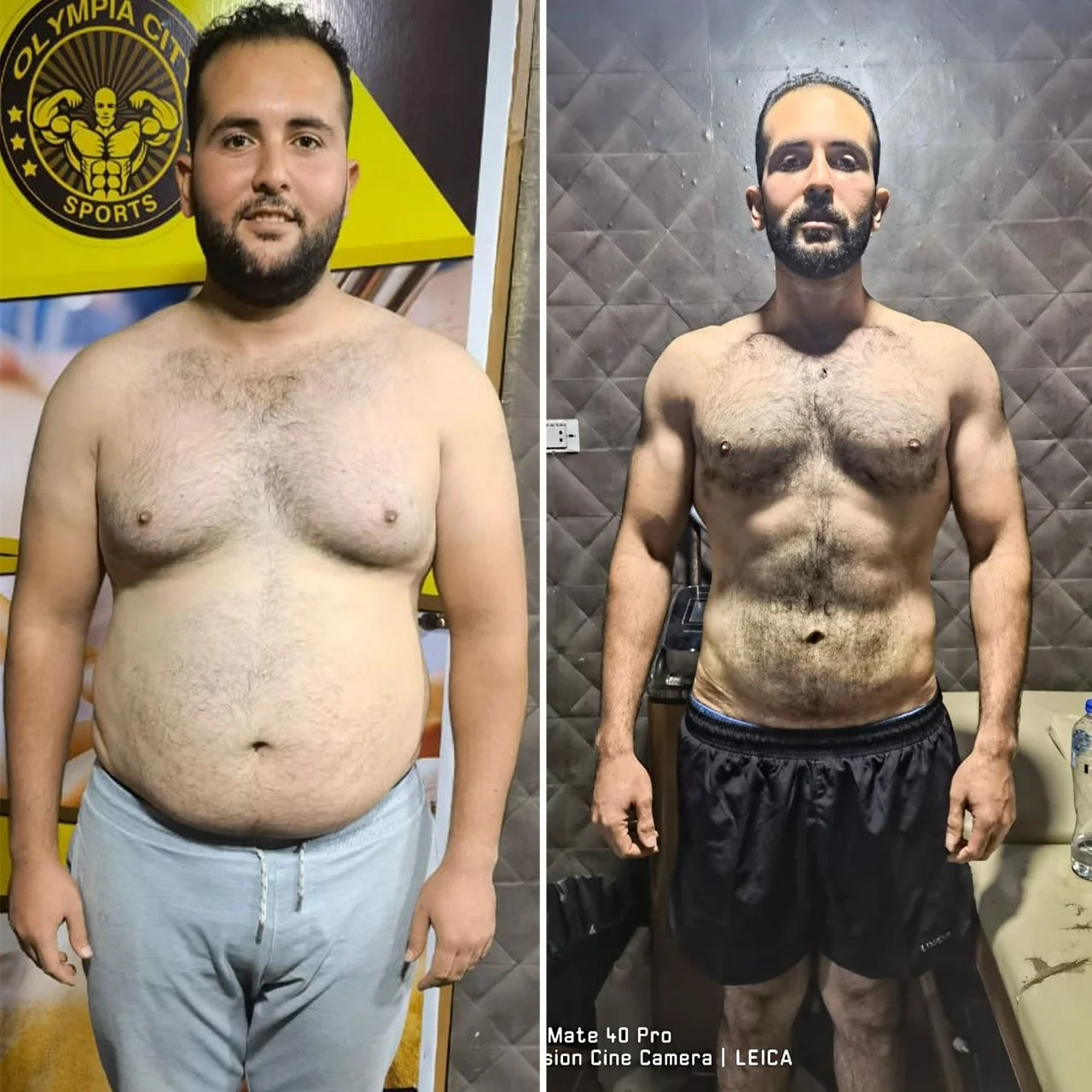 "استاذ احمد 40 سنة لم يكن يعاني من اي امراض لكن يحلم بجسم رياضي وشبابي فقط وتحسين صحتة العامة وبعد اشتراكة معايا "