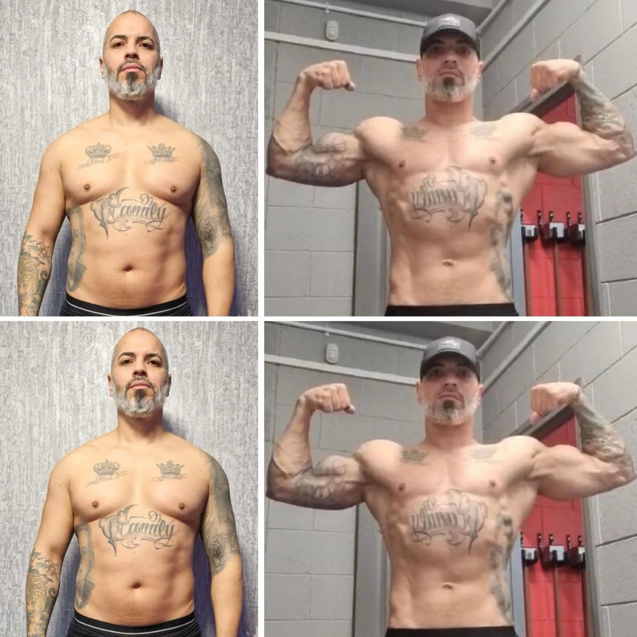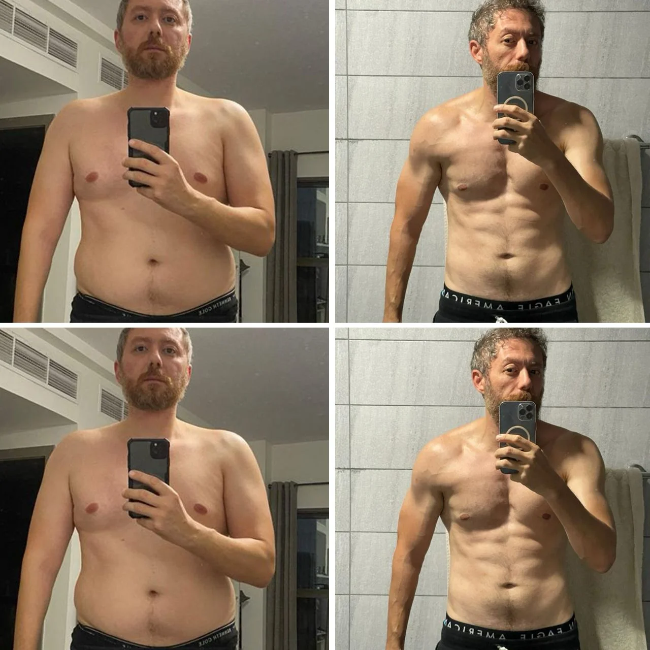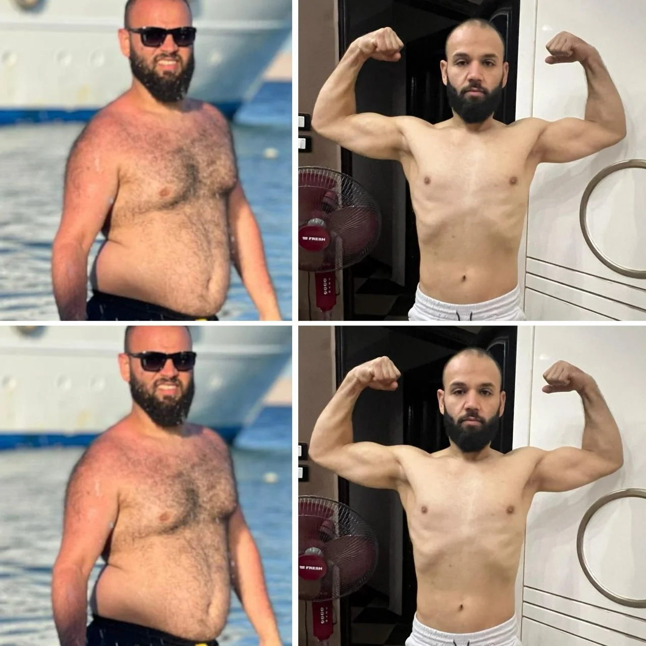 "استاذ احمد 40 سنة لم يكن يعاني من اي امراض لكن يحلم بجسم رياضي وشبابي فقط وتحسين صحتة العامة وبعد اشتراكة معايا "
