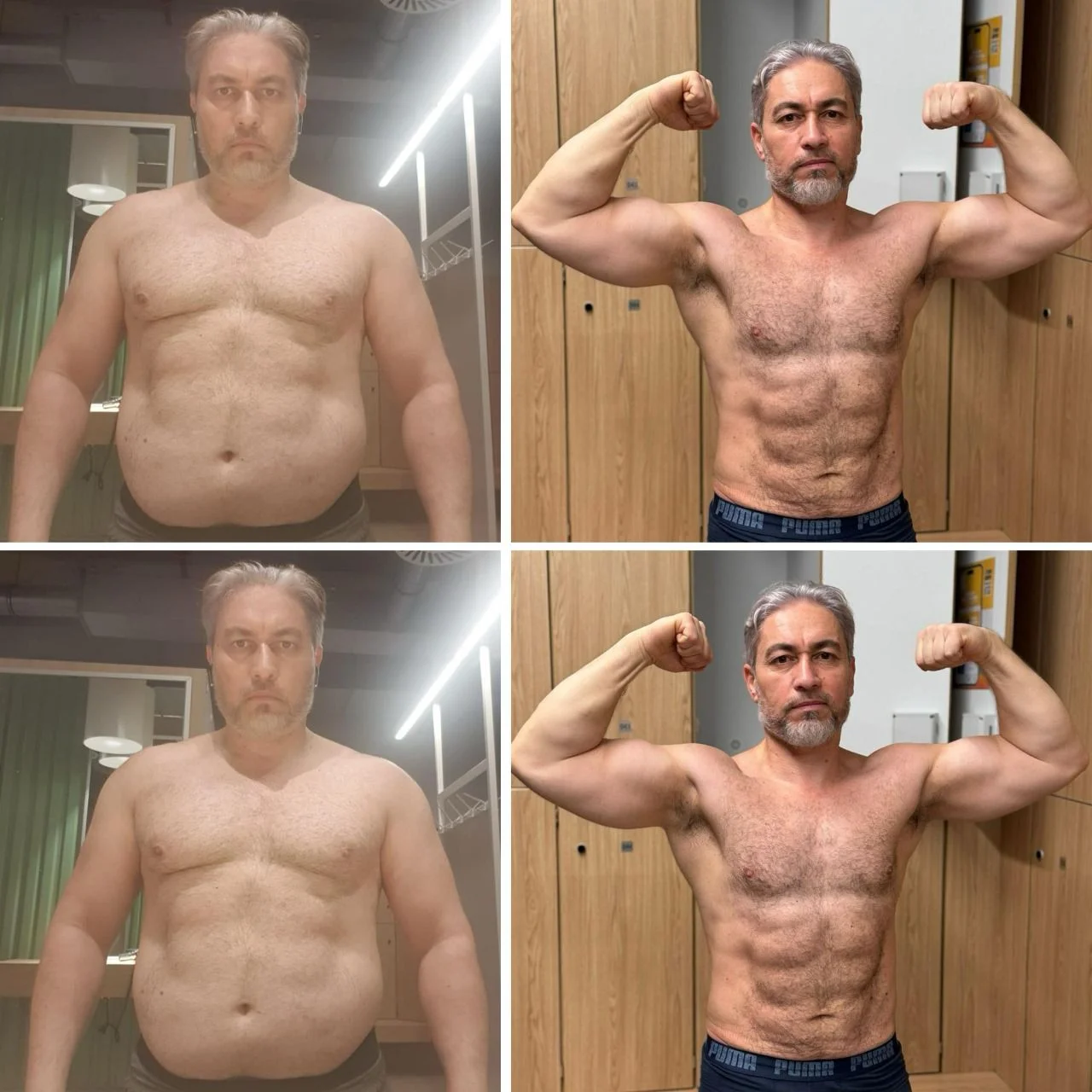 "استاذ محمد 50 سنة كان بيعاني من بعض المشاكل صحية وكان عنده حلم زي اي راجل انه يوصل لجسم رياضي وشبابي وبعد اشتراكة معايا في باقة +30"